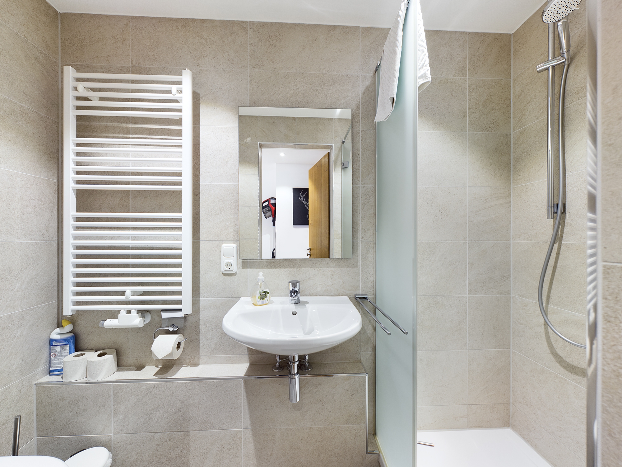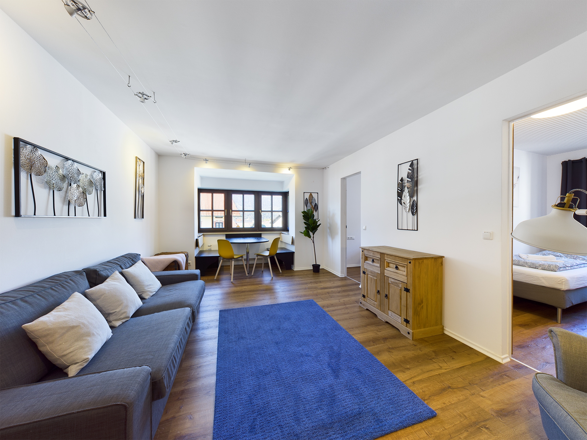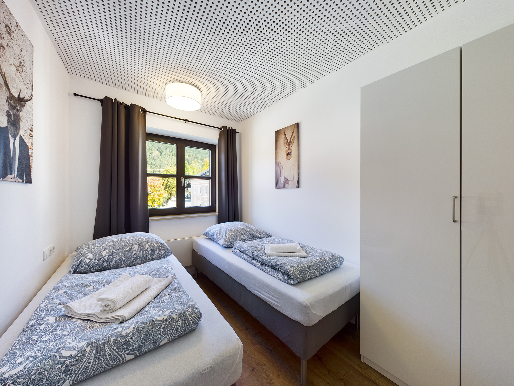 Die Wohnung erstreckt sich auf ca. 65 qm im 2. Obergeschoss und verfügt über 2 Schlafzimmer mit 4 Einzelbetten, 1 Bad und eine Küche.